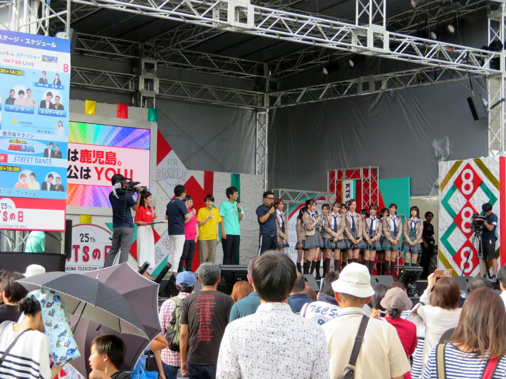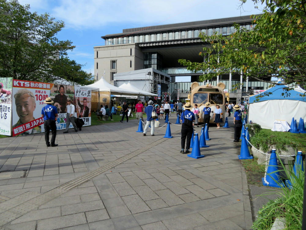 I had a little free time last week, so I checked the Amu Plaza website events page to seen if anything interesting was scheduled for the weekend. They had another of the "marugoto" (local products) fairs listed. This one was to be for Kagoshima, the weekend of Sept. 28-30, and then the following week (Oct. 6-8). These things often have live events stages, so I at least wanted to find out what the schedule would be. I had a lot of work on Friday, but I managed to take a break at 4 PM, and walked up to the main train station.