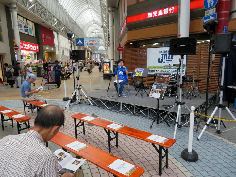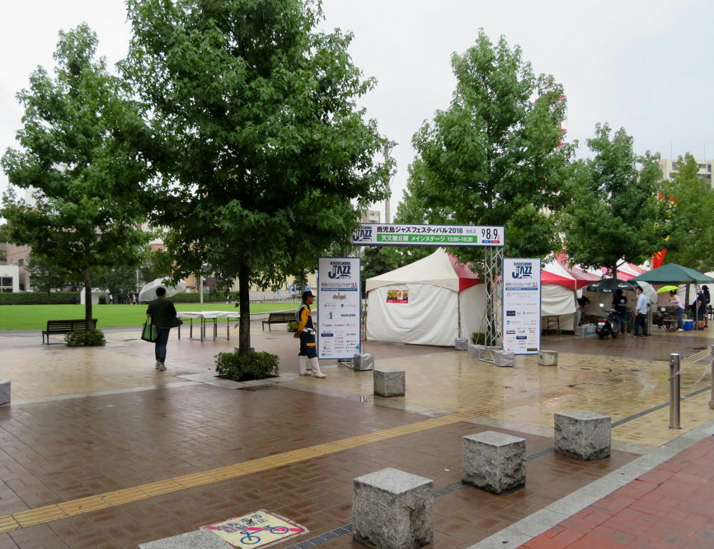 It turned out that there were something like 5 satellite stages around Tenmonkan and up at Amu Plaza, along with the main stage in Ten Park, the other side of Tenmonkan, and a few bars where you had to pay to get in. I had to work from 2-4 PM on Saturday, and again from 6-8 PM. But, I got out of the apartment a little early so I could swing by the main stage to get a program book. The one Tenmonkan stage in front of 7-11 hosted something called "Record Time," which I guess is the name of a radio program. It consisted of the DJ talking while the featured record played in the background. And yes, it was as boring as it sounds. He had over 4 hours of stage time during the fest, both at Tenmonkan, and Amu Plaza. Almost no one wanted to sit down and listen to him when I was in the area.