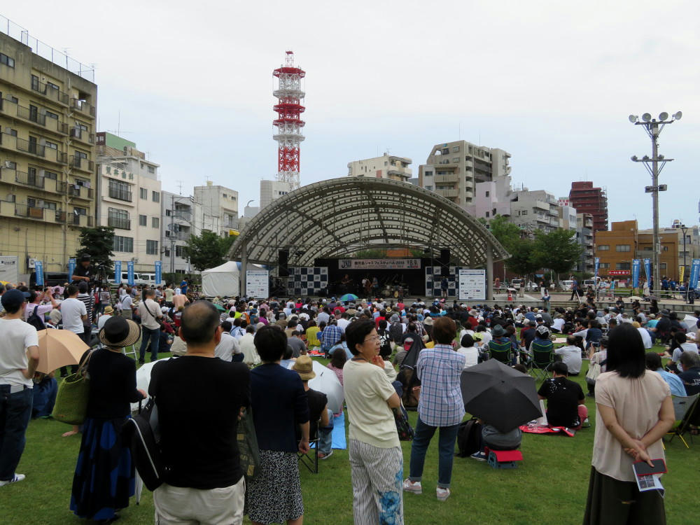 Finally, in front of 7-11, we had a little more sax jazz before I had to leave for dinner. While the music that I did listen to was mostly good, there wasn't much that really stood out for me. The lousy weather did kind of contribute to the problem as well. Overall, I enjoyed myself, but not as much as at the fest in 2017. On the plus side, the Shiroyama Hotel had their small brew beer available - 500 yen for a regular cup, 1,000 yen (9.50 USD) for a smaller 4-cup sampler (stout, IPA, white and a red). Those were good.