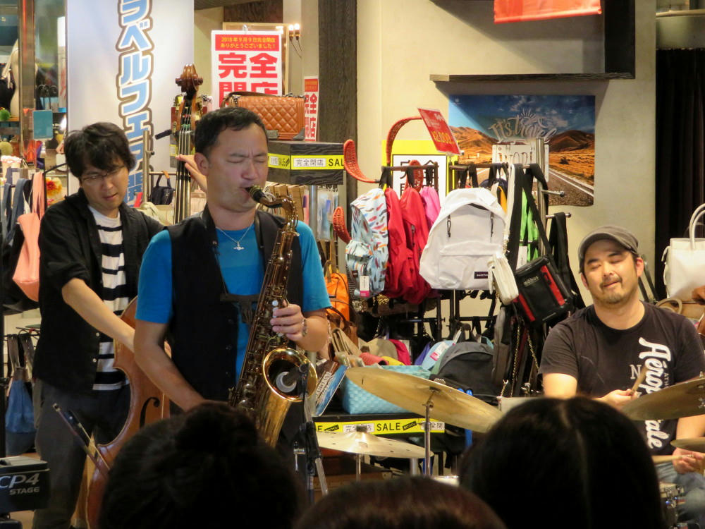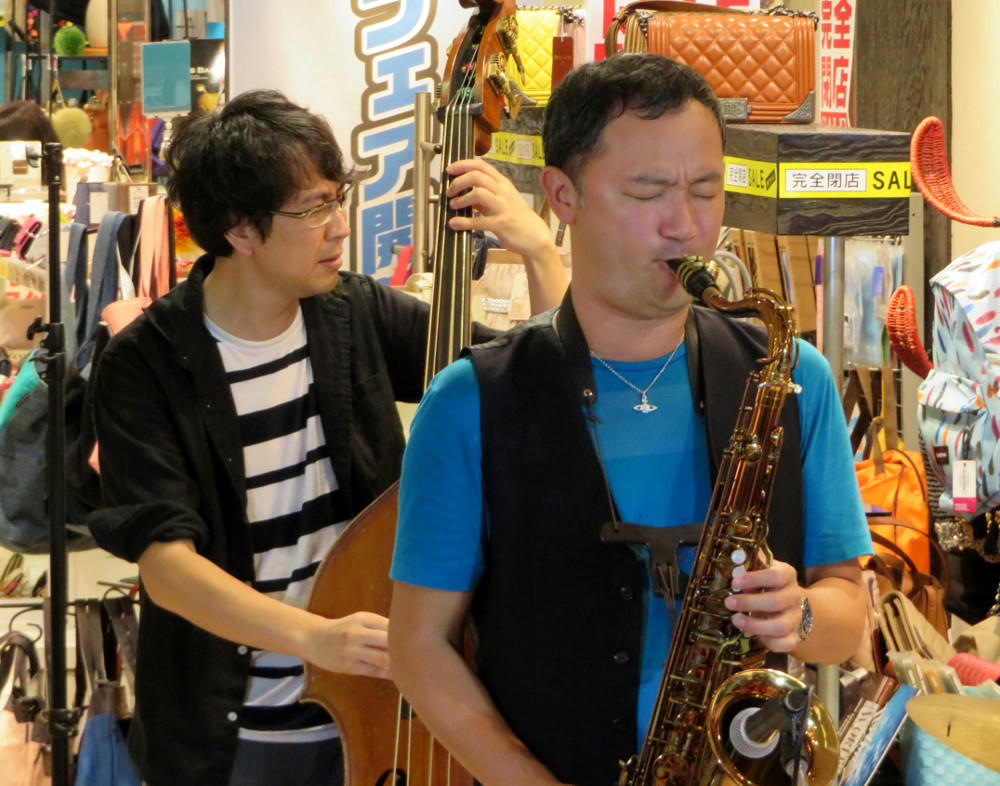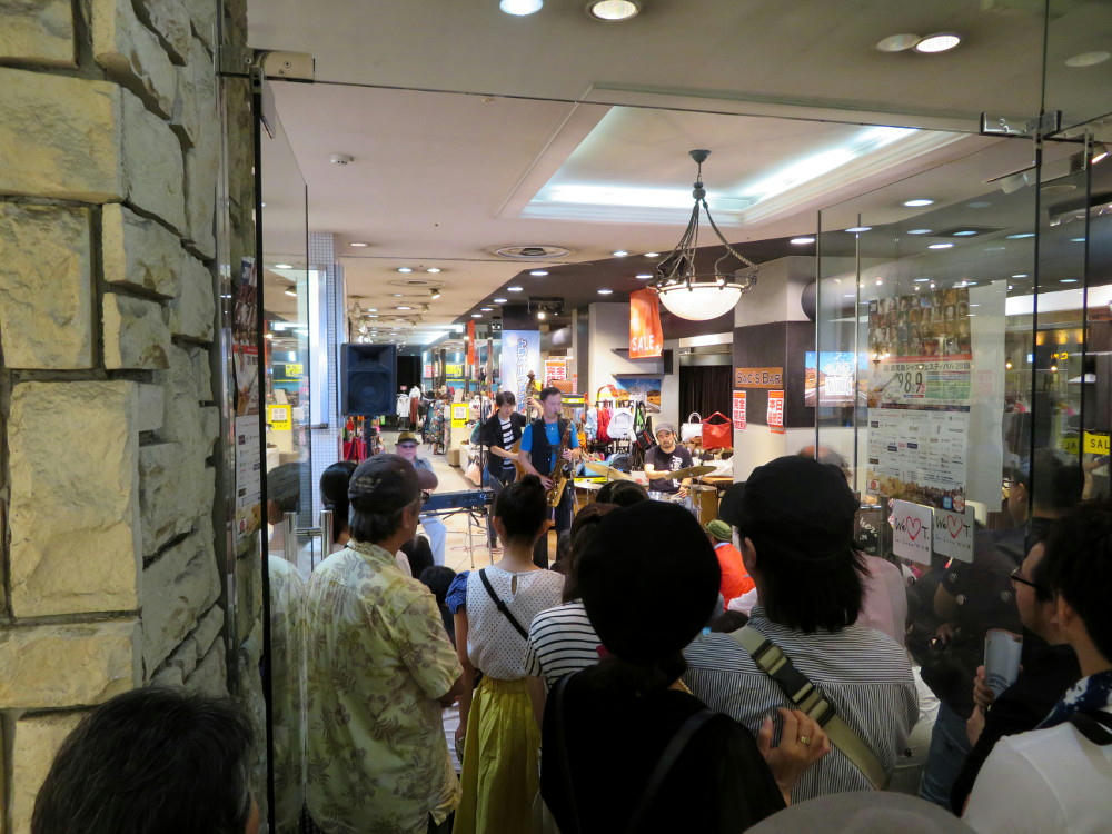 The reason for not hanging around Takapla much was that they'd set up the stage just inside the front doors of the department store, and the audience pretty much had to stand in the doorways to listen. There was a small ring of people sitting closer in front of the band, but they blocked the doors to keep anyone else from coming in. That was ill-planned. I liked the music, though.