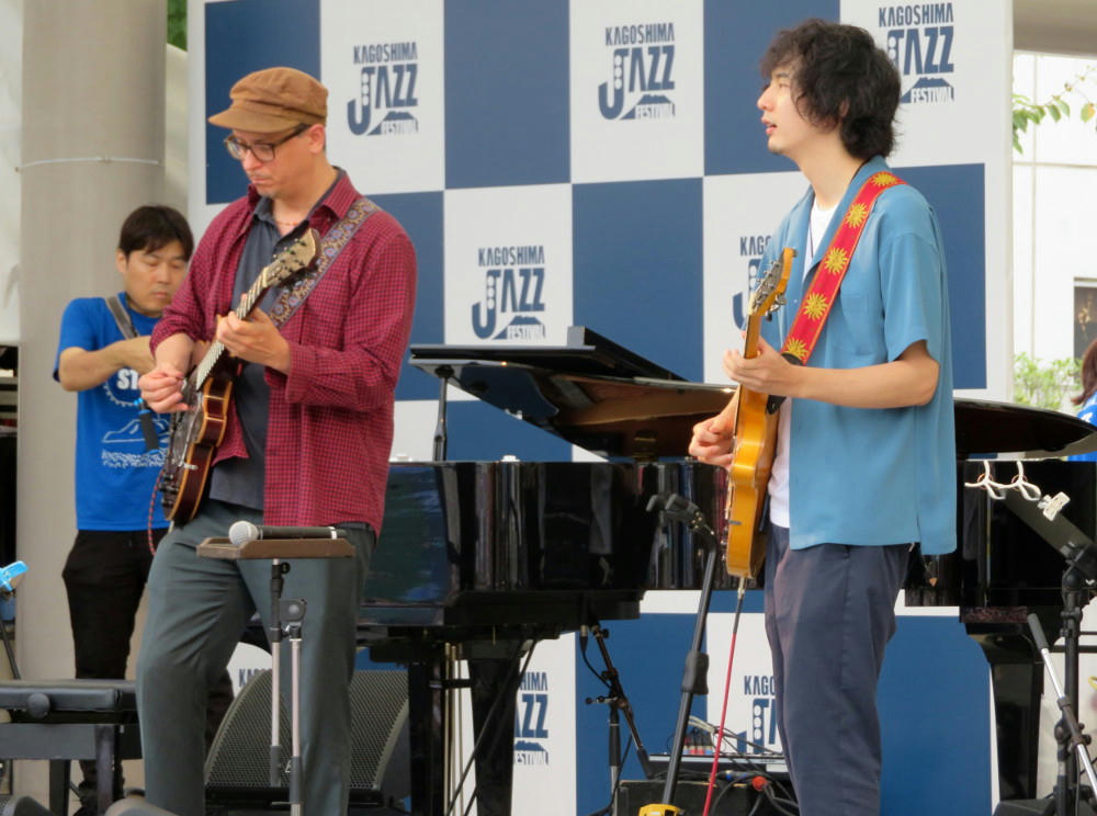 The main guest for the weekend was Kurt Rosenwinkel, on Sunday. The program book showed the two backup members of his Trio, but during the fest Kurt was backed by 3 Japanese musicians that played for several other groups as well. The rain had mostly stopped, and I didn't think I'd need my umbrella. But, Kurt played just mellow, laidback jazz that I also didn't really feel like recording.