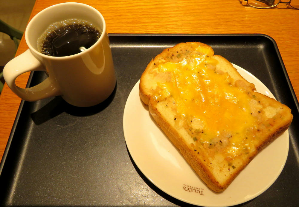 For some reason, more coffee shops have started offering morning sets. Tully has hot dog, tuna melt, egg salad, HLT (ham, lettuce and tomato) options, plus coffee, between 520 and 600 yen ($5-$6).