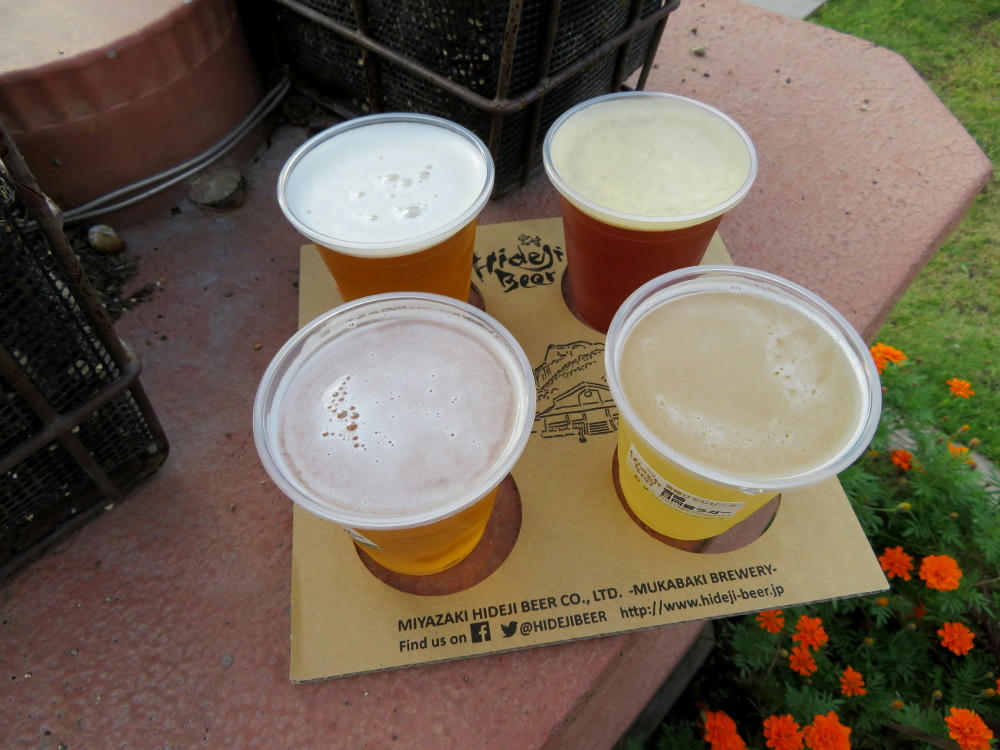 I got something that was labelled a "dark beer German import" from the DI table for 500 yen, but it didn't really taste German. It was lager-like and kind of disappointing. After that, I got the sampler from Hideji Brewing for 1000 yen (they're in Miyazaki, which is under 100 miles northeast of Kagoshima). It included two fruit beers, and two lagers. All four beers were sour, heavily hopped, and difficult to drink.