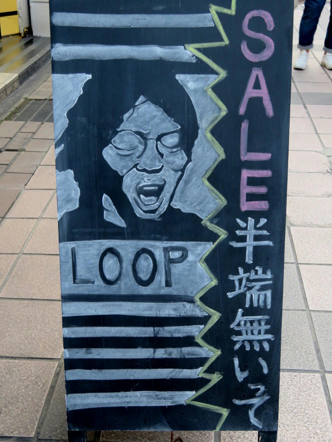New chalk art for Loop Shoe store. Initially, I had no idea who this was supposed to be. Then, just by accident I spotted a similar picture printed on paper and pasted in a school window, with the text "Osako Hanpa Naitte." A google search led me to a Japan Times article talking about some t-shirts a designer named Yasukazu Asano had come up with to promote soccer player Yuya Osako. Apparently this had turned into a meme that resurfaced when the Samurai Blue team made it to the 2018 World Cup. The phrase translates to "Osako is Way Too Good."