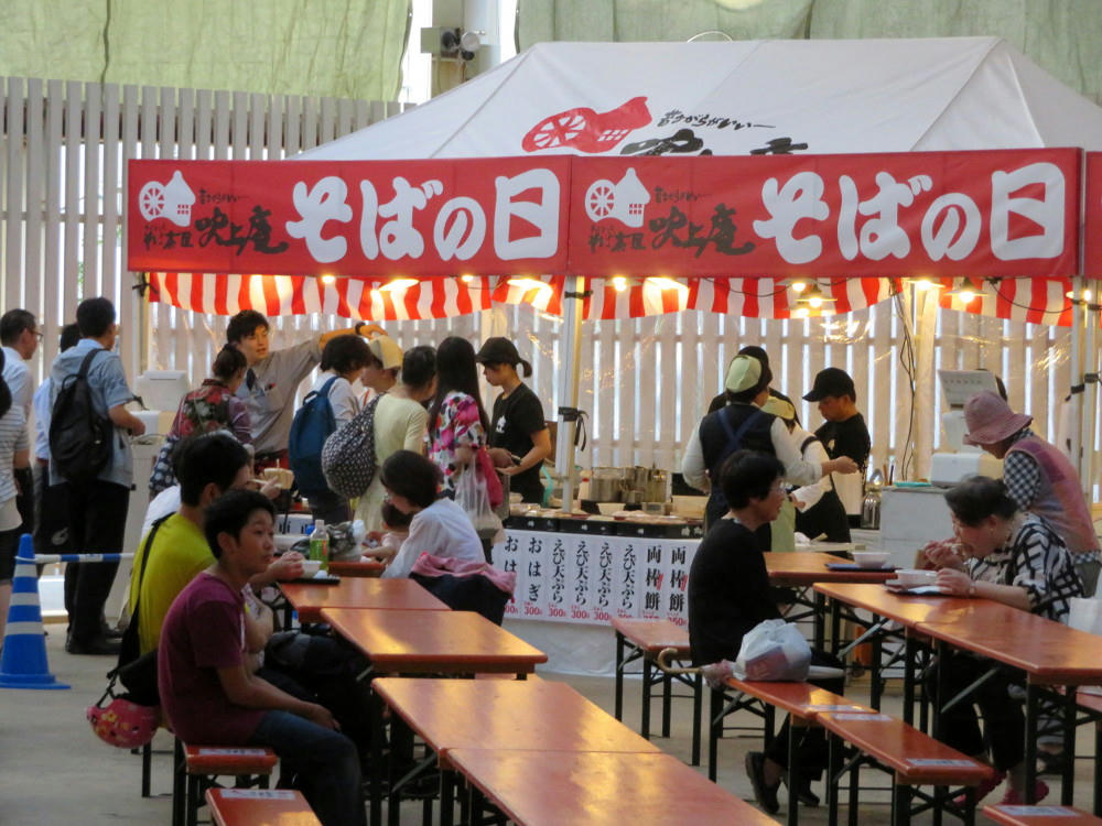 Last week, I think around Wednesday, the open space in front of Lotteria had their "100 yen Soba Day." Actually, the bowls of soba were between 300 and 500 yen for the fancier stuff, and the toppings were extra. But, it's the thought that counts. I didn't know this was going on until I went in to the English class to teach lessons, and when I got out, the event had finished and they were already tearing down the tables.
