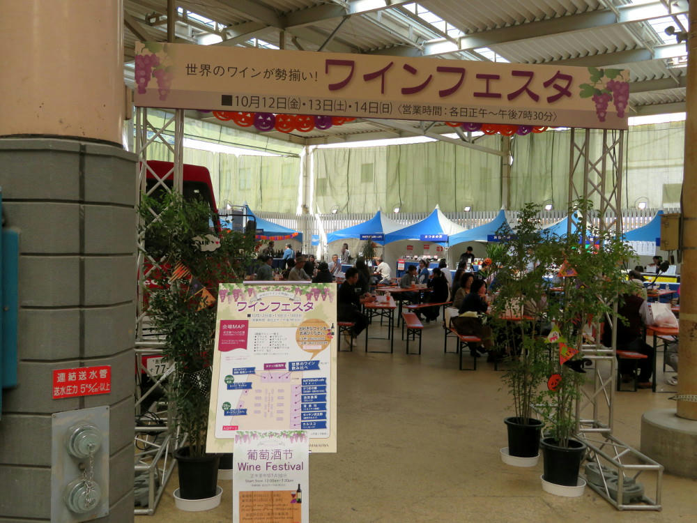 Then, on Sat. and Sun., the same space had their occasional wine fest. 500 yen ($5 USD) for one glass of wine. In the past, they've also had live classical music to set the mood, but this time they just used a CD player. I had to work on Saturday, and when I got out at 8 PM, they'd again already shut down for the night. I didn't have the chance to get back here on Sunday.