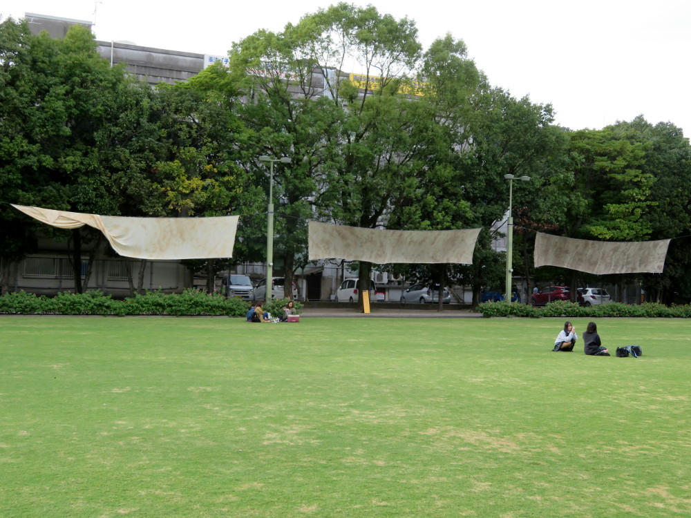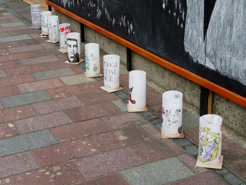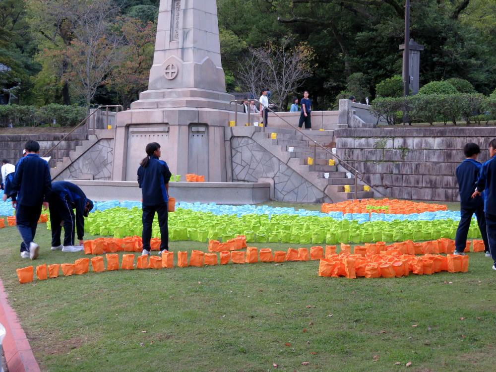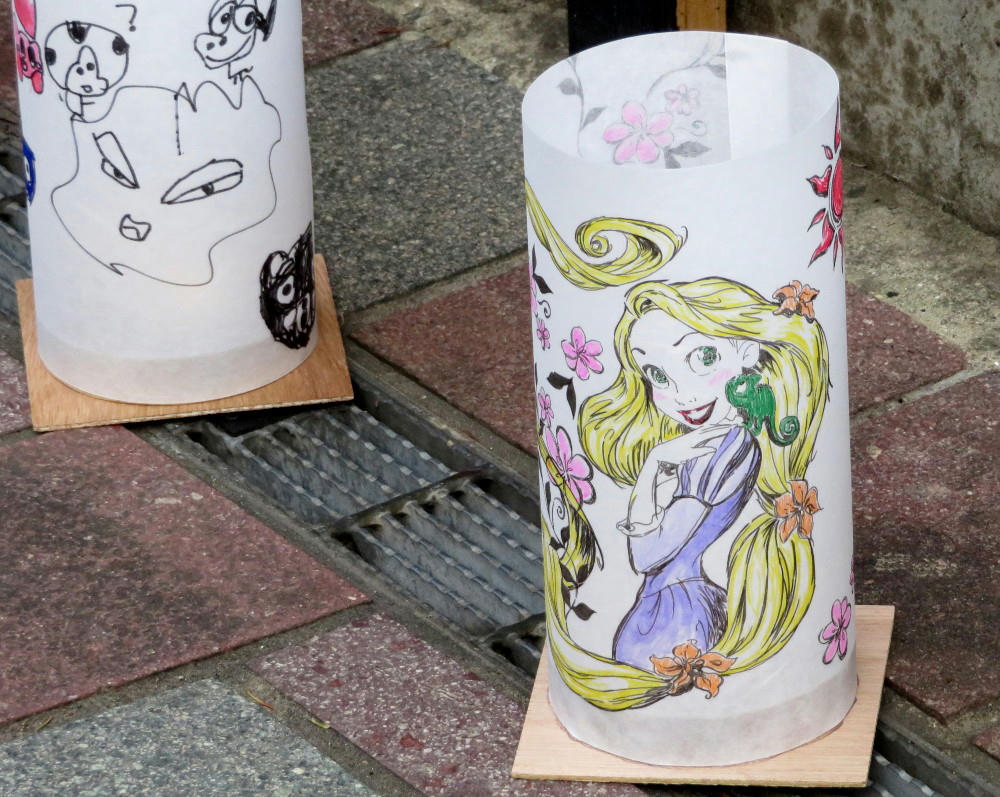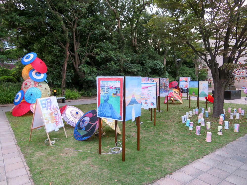 In the park next to the shrine, school kids were in the process of preparing their artworks. Some of which still weren't finished by 6 PM, when it was starting to get dark.