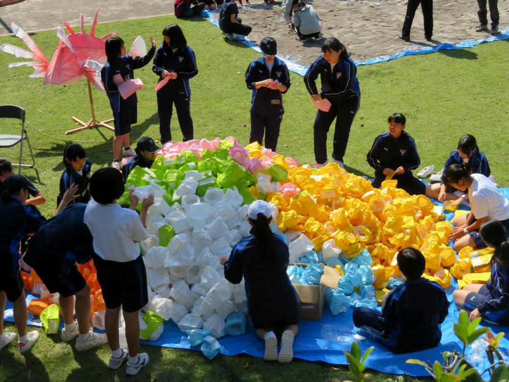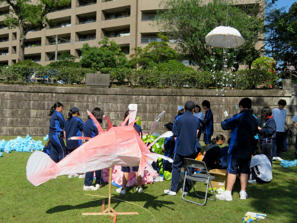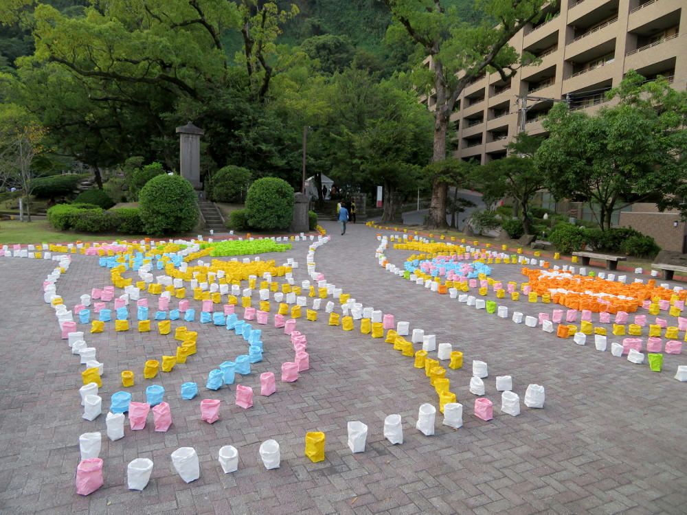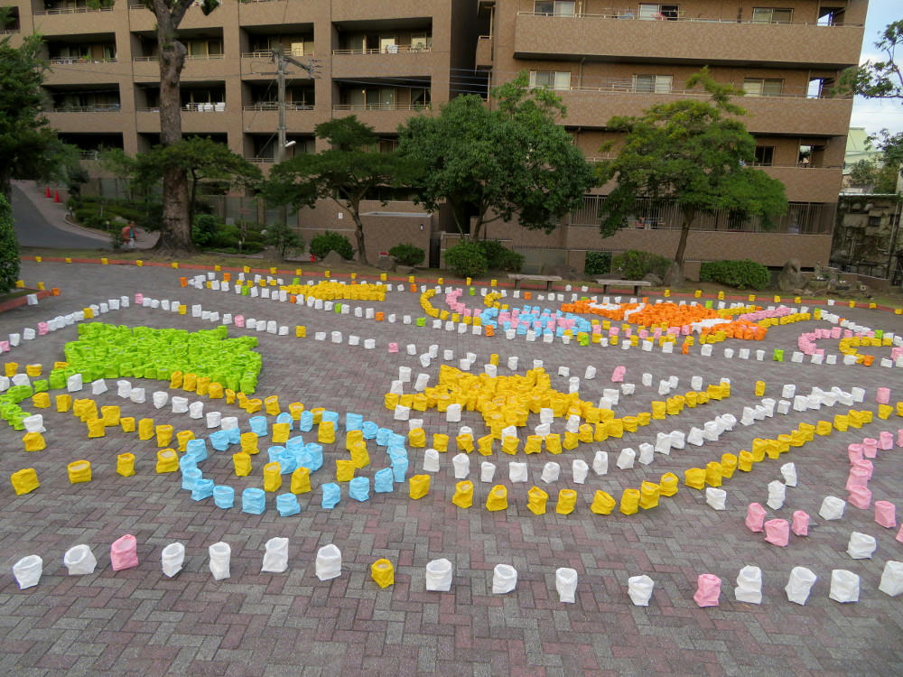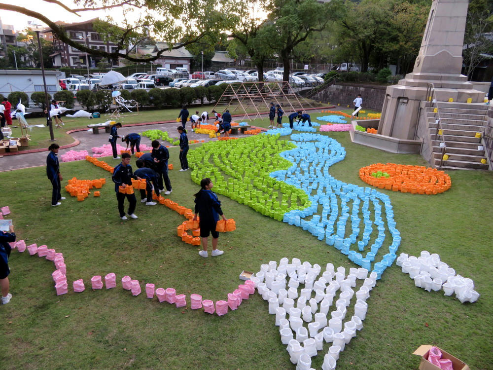 In the park next to the shrine, school kids were in the process of preparing their artworks. Some of which still weren't finished by 6 PM, when it was starting to get dark.