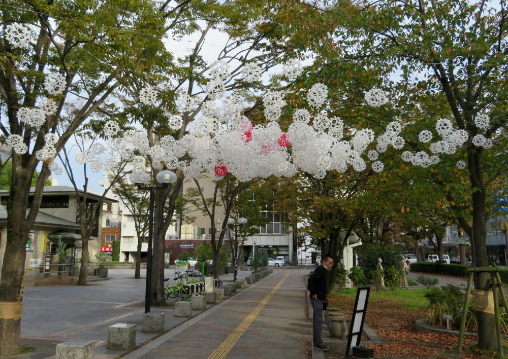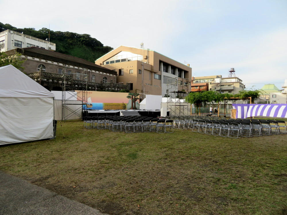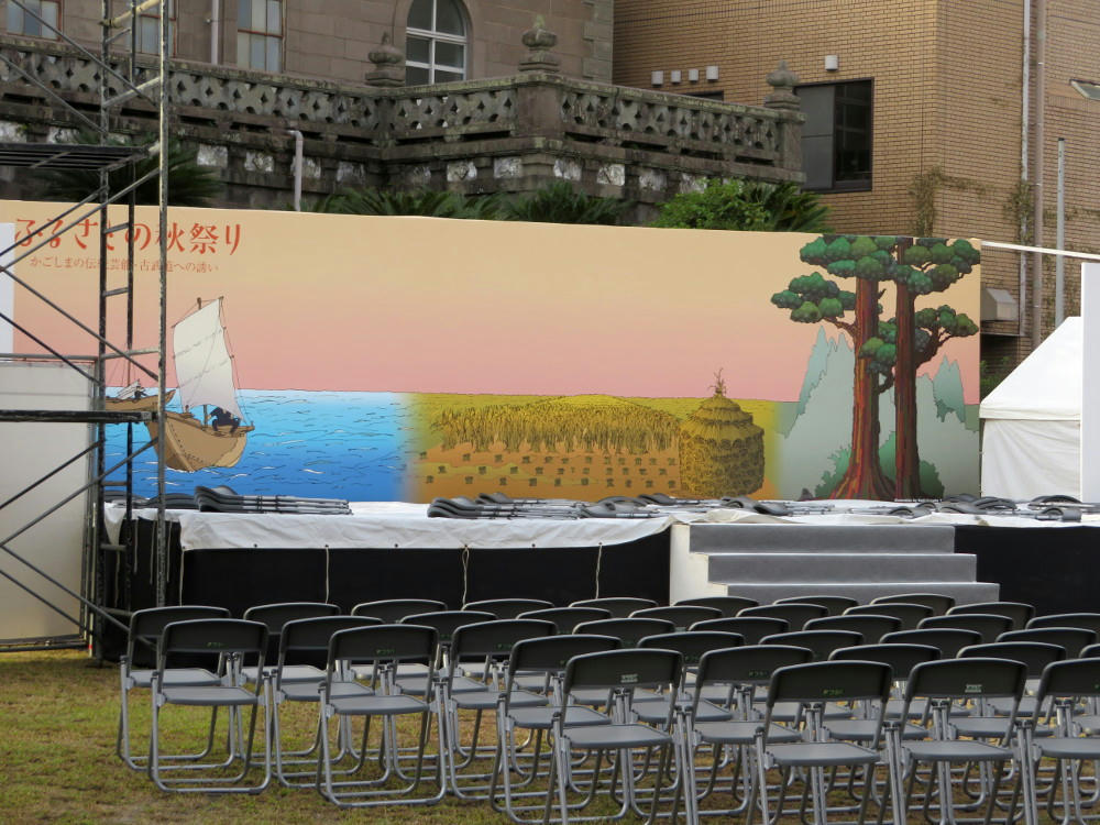 I counted 4 stages total. This one between Central Park and Terukini Shrine. One in the park beside the shrine, one in front of the Kagoshima Art Museum, and one more next to the Marchen Children's museum.