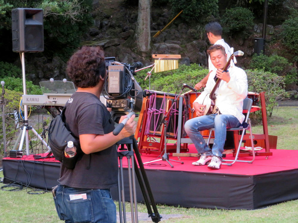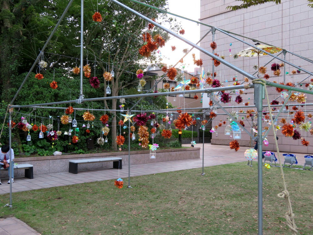 The MBC stage was 20-30 meters from the paper bag installation, and largely featured professonal musicians playing koto, drums and guitar. I had time to record two songs. There weren't that many people watching, but they were sitting in folding chairs and that took up a lot of room, making it hard for me to move around and get good photos.
