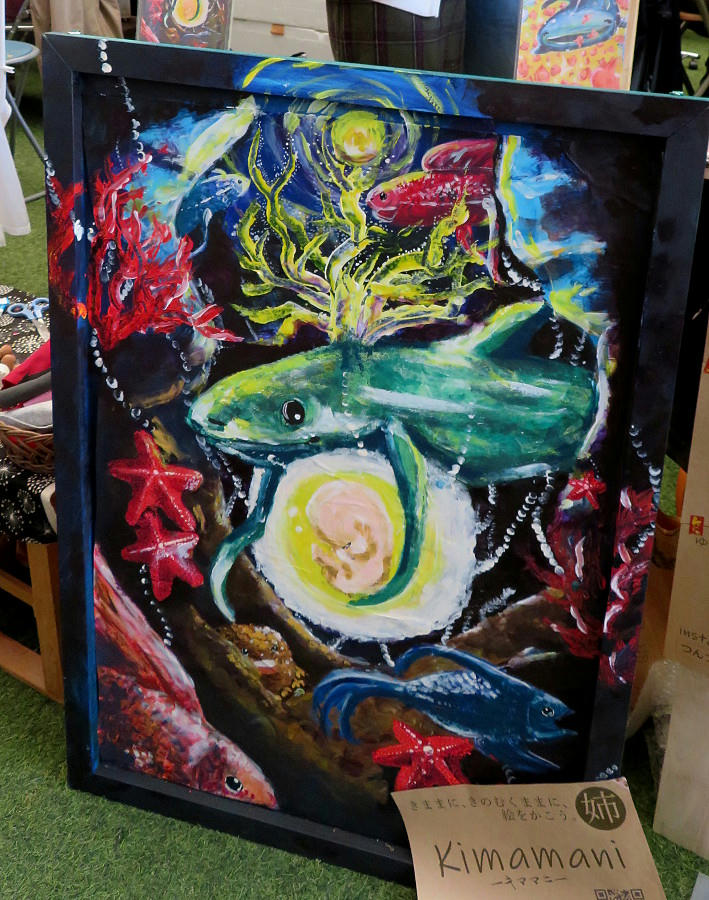 There was a little table near the event space entrance selling prints and originals for each of the artists. I've seen this kind of event before, and there's never anything that I like. Which seems to be the definition of "modern" art now, in Japan.