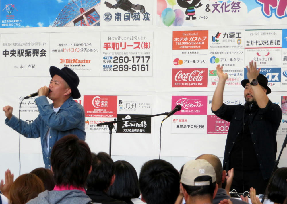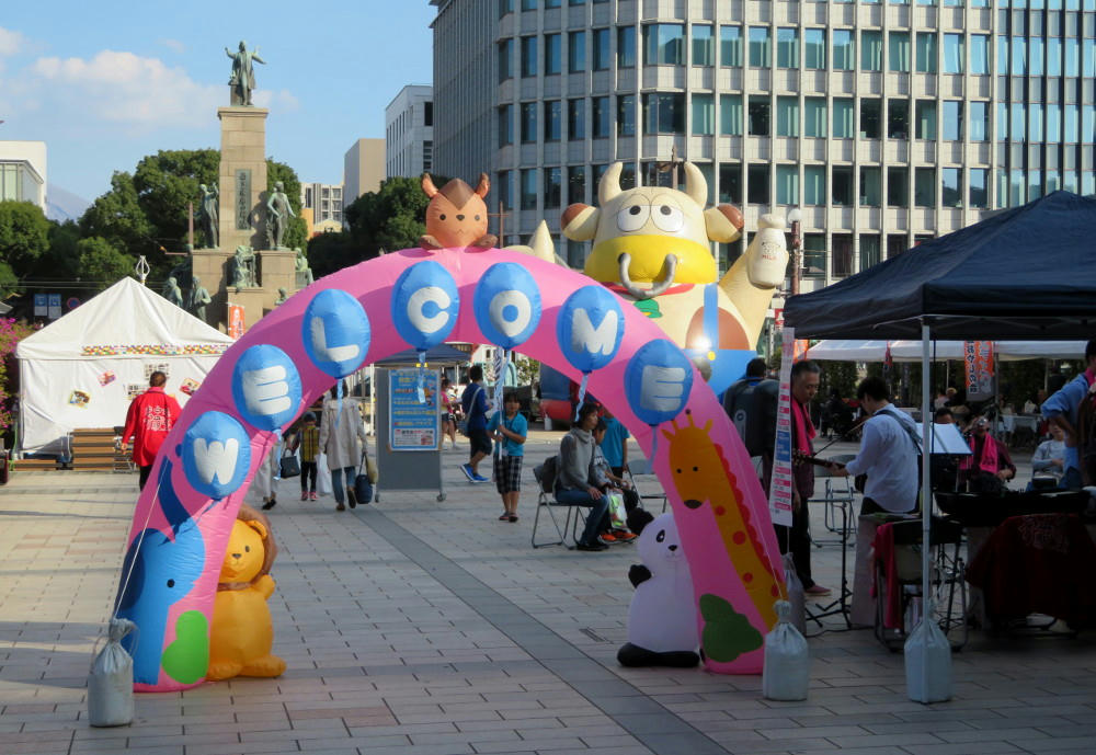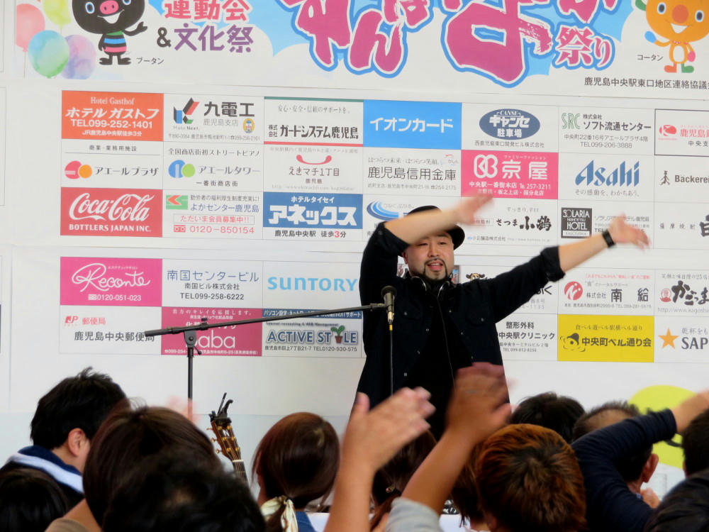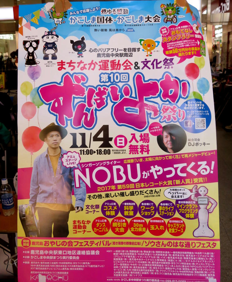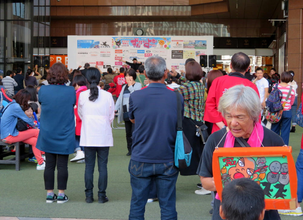 As mentioned in the previous blog entry, I'd been told that something was going on at Amu Plaza on the 4th, but I didn't know what it was. After hitting the Meiji Furusato Matsuri at 3 PM, I continued up to Amu, where I discovered they were hosting another awareness-raising event for barrier-free access to businesses in Kagoshima. They've been doing this for a couple years now, and they still haven't gotten around to putting in a wheelchair ramp on the main stage. No idea what these people are thinking here.
