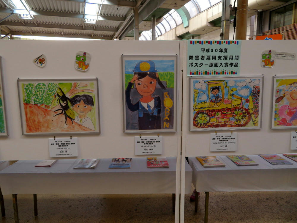 There really was a lot going on Sunday. After cutting through the Tax Fair in the middle of Tenmonkan on my way to the Volunteer Center, I happened by the open space in front of Lotteria. There, I discovered an event dedicated to people with disabilities (a different event from the one the weekend before). This one included artwork by people with various disabilities, and activities for families. One area had wheelchair soccer, and kind of a wheelchair obstacle course. There weren't a lot of people there at 2 PM, but the ones that were there really seemed to be enjoying themselves.