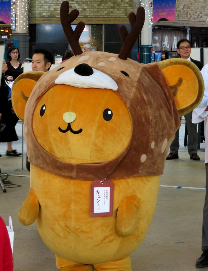 There was a big announcement event, where the sponsors debuted Kyun-kun, a deer-themed foamhead mascot. They had close to ten officials there for the announcement, so I guess someone, for some reason, thought this was a big deal. Say "hi," Kyun.
