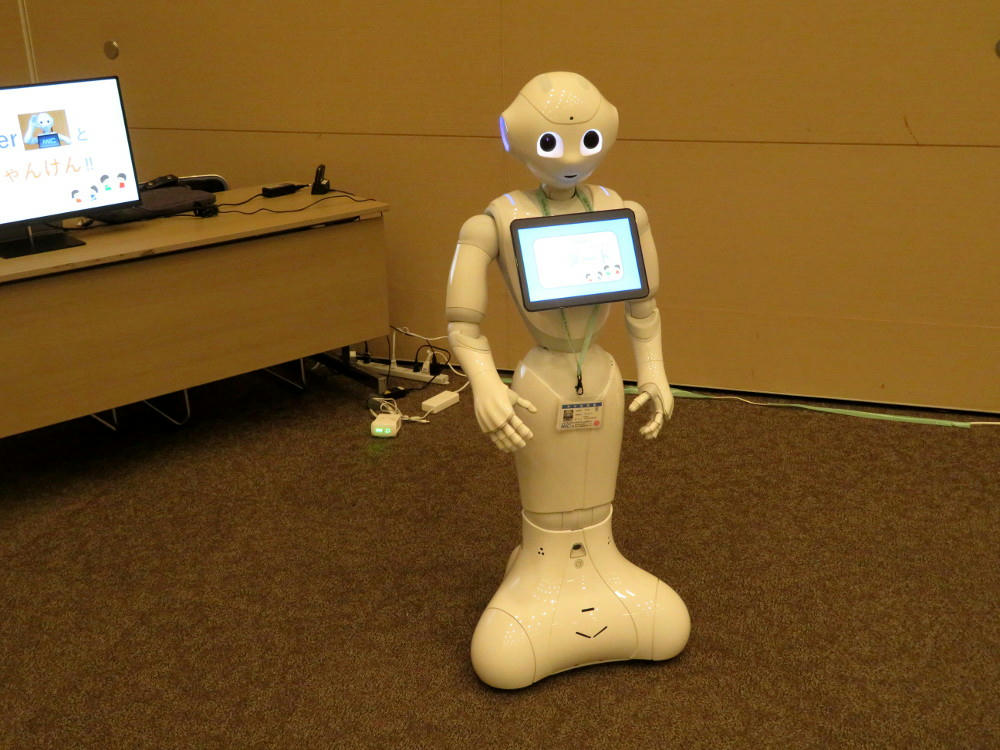 Dancing with, or playing rock-papper-scissors with Pepper the robot. It has face recognition, and its eyes will follow you as you walk around the room.