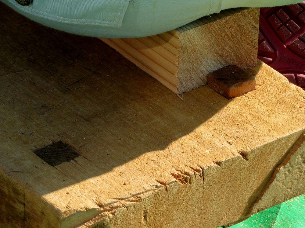 I'd thought the pegs were just there for ornamentation, but they're actually stops specifically for the task of keeping planks from sliding around when you're working on them.