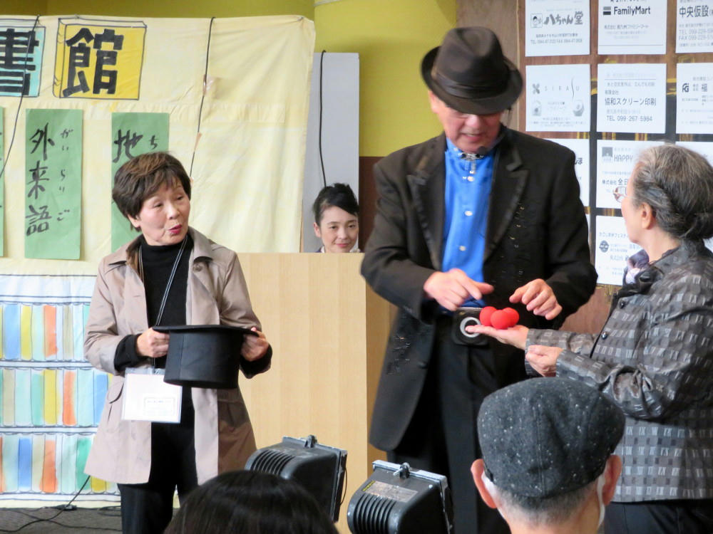 First up was a talent and information presentation show. I arrived just as the first stage magician was finishing up, so I decided I'd take a few photos of the second magician for the blog. He started out with the "coins from the air" bit, and followed that up with "the reproducing sponge balls." He wasn't too bad, but those are pretty well-known routines, although the audience of mostly old people still seemed to be amazed at the schtick.