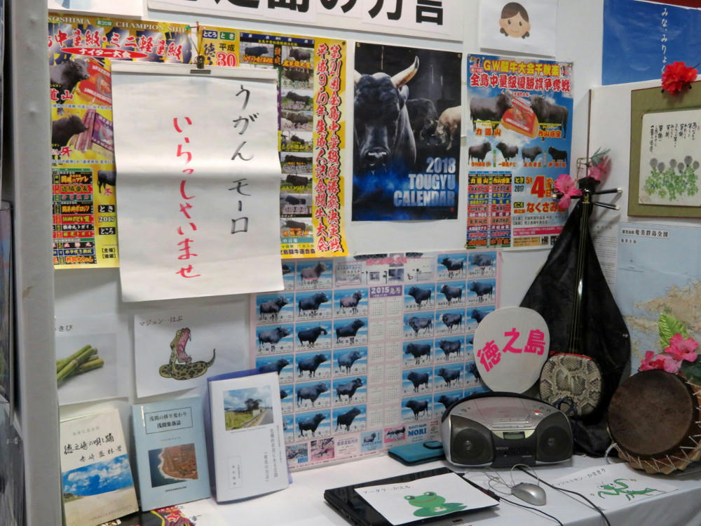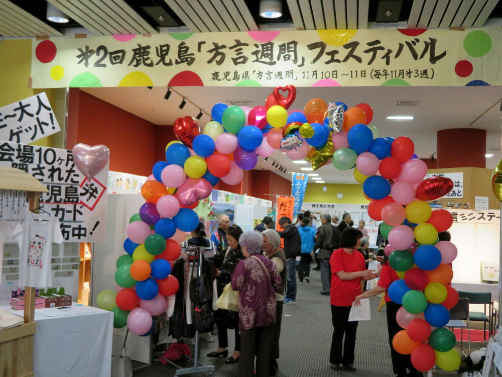 Across the hall from the stage was the "Second Kagoshima "Dialect Weekend" Festival." I didn't quite figure out what was going on here. Some of it seems to be information about the culture and traditions of some of the island towns in Kagoshima Prefecture, but some of it seemed to be related to Kagoshima-dialect, which is radically different from the rest of Japan (this dialect was specifically created to identify outsiders, usually government spies, during the Shogunate era of 1600 to about 1856 AD). A number of volunteers stood around, holding clipboards with quiz sheets. An educational weekend.