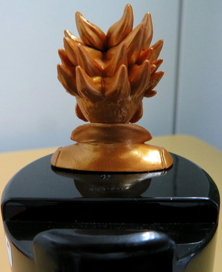The next day, same problem, so I bought a second can. This time, I got lucky. This is Future Trunks. The can tops are part of the office supplies holder type, and this one is designed to hold a cutter knife (no idea why this was considered a useful thing). Other can tops hold earbuds, and smartphones.