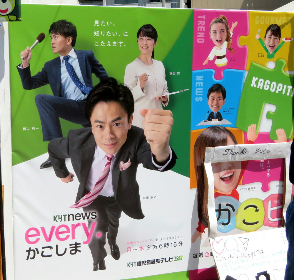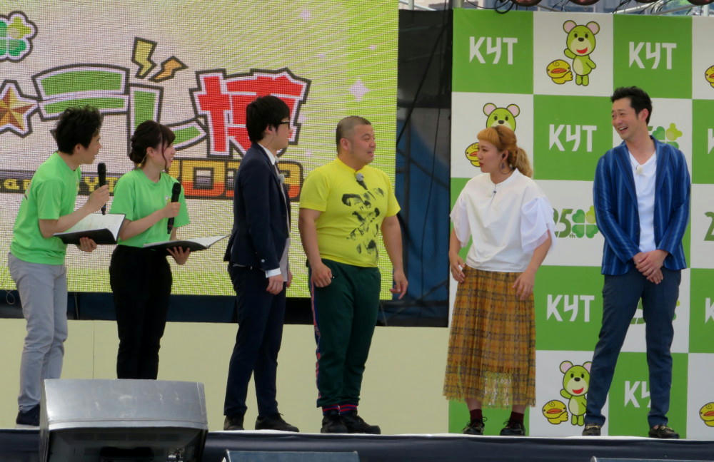 The woman on the left is Nora Hirano, who I'm told is a very brash comedian on KYT. Right now, she's posing for the audience.