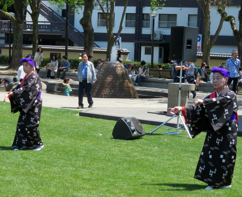 Sunday, I returned to Central Park a little after 1 PM. A boys dance group named 10-Jin Actor (10 Person/Gods Actor) was on stage doing some standard boys idol group dancing. They seemed fairly uncoordinated, but there was a huge audience in front of the stage watching them and cheering (easily 500 people), and no one was holding up smartphones. I figured there was a no-cameras policy in effect, and didn't bother trying to sneak a couple photos before getting caught. There's nothing I can easily find on them in English, although the Japanese