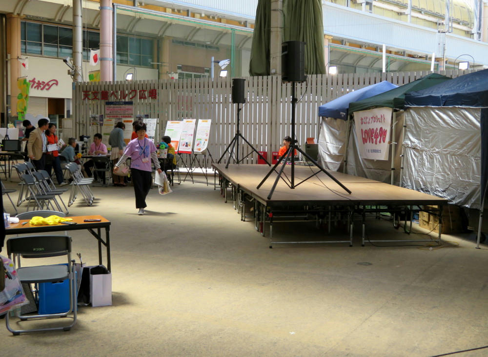After looking around Central Park for a few minutes, I went to Tenmonkan, thinking I'd be able to see some of the Dai Hanya dancing at the satellite site in front of Starbucks. Instead, the area was taken up by Wan Wan Festa (tomorrow). I took photos there, then went to Dolphin Port, which is where the main Dai Hanya stage was scheduled to be located. After that, I went to the school to teach one class, then ran back to Dolphin Port (probably losing one of my camera batteries along the way) during my break, then back to work for two lessons.