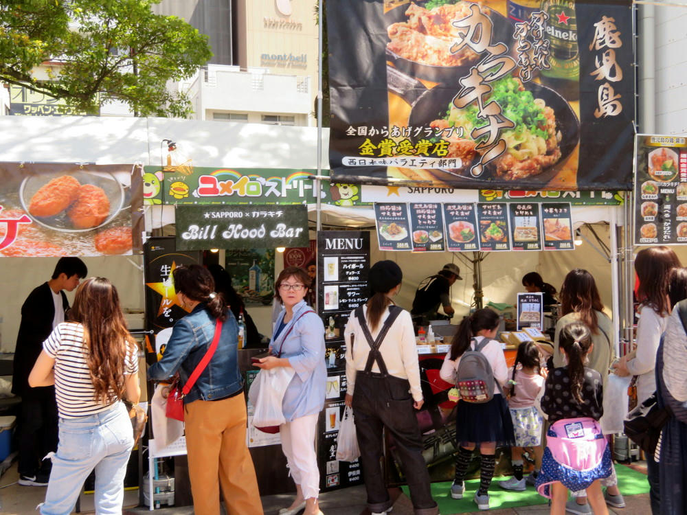 Lots of food and souvenir tables. Food from the big restaurant chains.