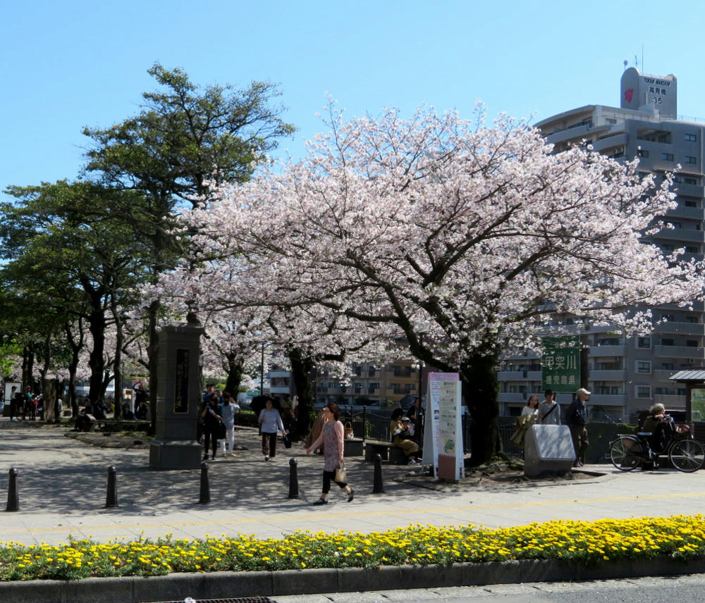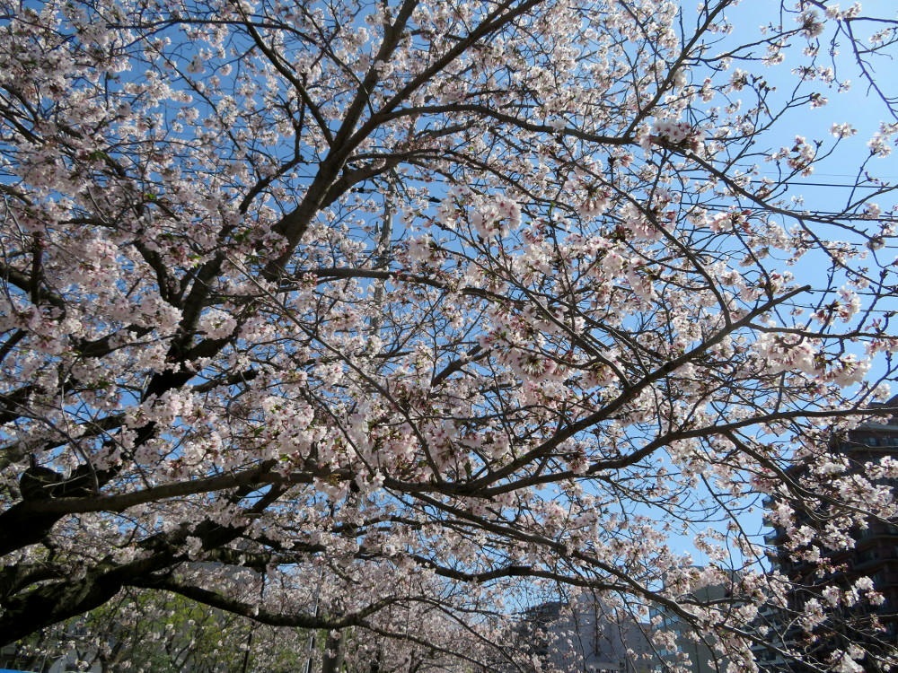 The weather has been really weird this year. Never cold enough to get snow, but sudden temperature drops within just the last few days. The cherry blossoms had come out in Tokyo almost a full week before they did farther south in Kyushu. Last Monday, there were only a few blossoms on one tree along the Kotsuki river, and on Sunday we were at full peak. The last couple of days have been t-shirt weather, too. Very unpredictable.