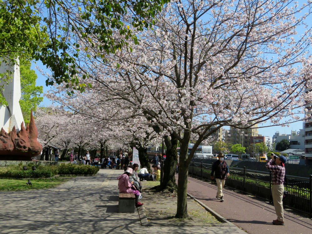 The last couple of years, this area had been used by the city of Kagoshima for hosting a "Night Viewing" festival, with food booths, lanterns and live jazz performances. So far, I've seen nothing advertising that for this year, so I'm thinking the city had been losing money on it and just gave up. A local NPO group had their Ohanami party a week and a half ago, with shared food and music, but I had to do shopping that day and I missed it.