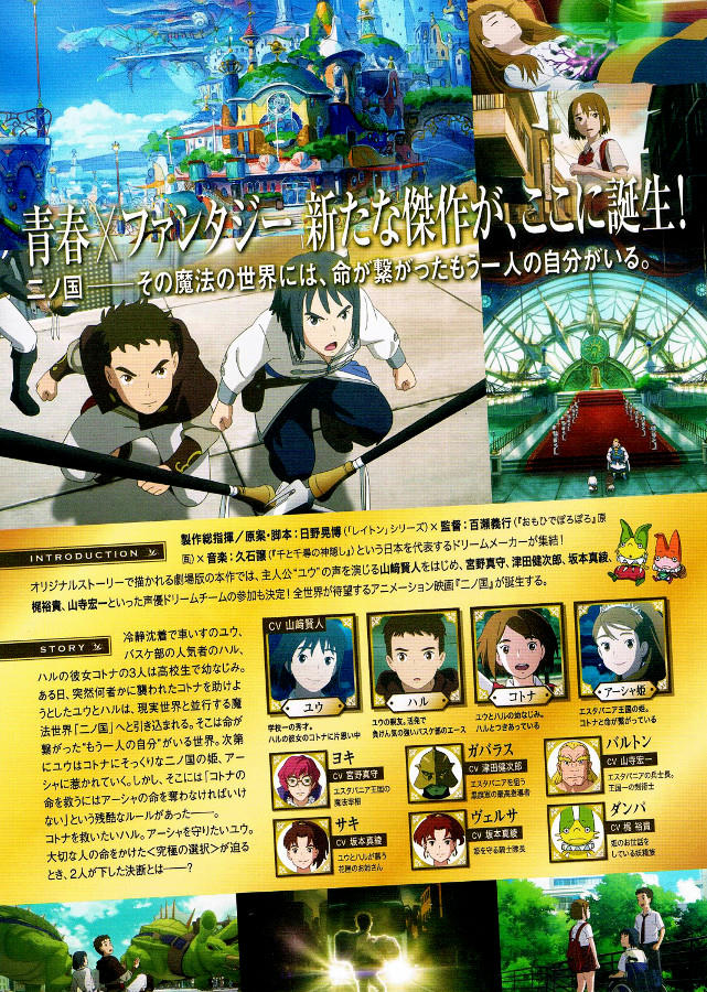 I played the Ni no Kuni ("The Two Countries") 3DS game a couple years ago. Beautiful artwork, but spotty gameplay. Didn't quite live up to its potential. Looks like there's a movie version for it now.