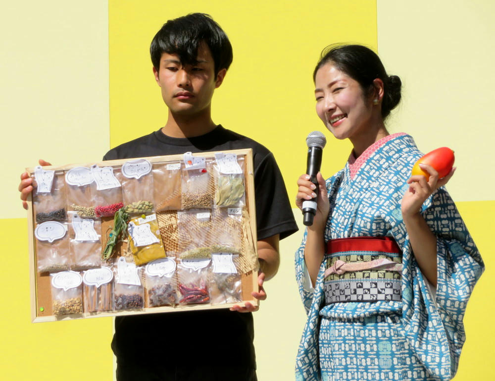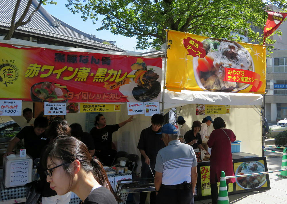 The event ran Saturday and Sunday. I was scheduled to have classes at the school all day Saturday, but I did make a point of getting out of the apartment early so I could swing by the Road of Light and Sound event nearby, and get back to the park on my way to Maruya Gardens to get the newspaper on my way in. At the time, the stage event was just a PR promo for curry, showing the kinds of spices used in Japanese curries. There were maybe 5 people watching, and 100-200 at the tables at the other end of the park getting something to eat.