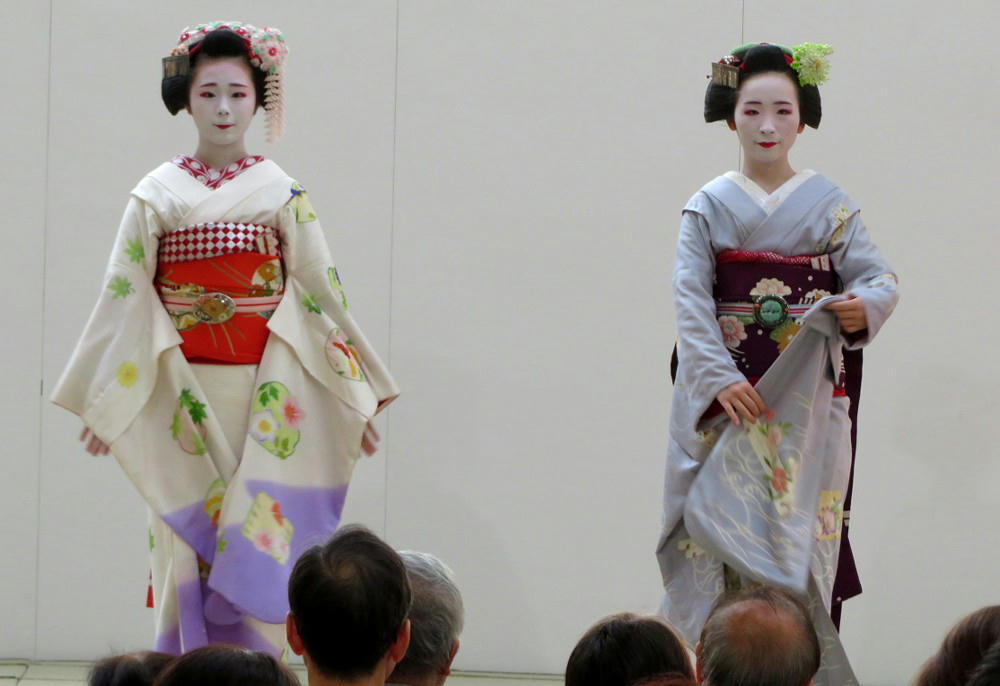 The person I was meeting wanted to grab lunch in the restaurant on the top floor of Yamakataya, so I wasn't able to stick around to get more photos. After we finished lunch, we went out to the elevator to return to the ground floor, and right next to the elevator were the two Maiko, posing for photos with anyone who wanted one. Unfortunately, I wasn't given the time to get my picture taken with them, so I lost that opportunity. They were scheduled for performances on Wednesday, too, but I had conflicting classes at those time and wasn't able to get to Tenmonkan for that. Maybe next year.