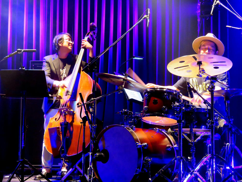 Back in September, I wrote about seeing Keishi (KC) in the lobby of the Tokyu Rei Hotel when he was between sets during a buffet dinner show. He's the organizer of the 2-day Kagoshima Jazz Festival in September, and I'd first bumped into him when he was in the beer line getting Shiroyama hotel craft beer for some of the stage crew. We talked a bit then, and he remembered me a couple weeks later when I walked into the Rei to say "hi." He told me that he was going to have a show with his own Trio at Caparvo Hall in October, and suggested that I go see him play his own music then, rather than just playing as a sideman for some other singer or sax player.