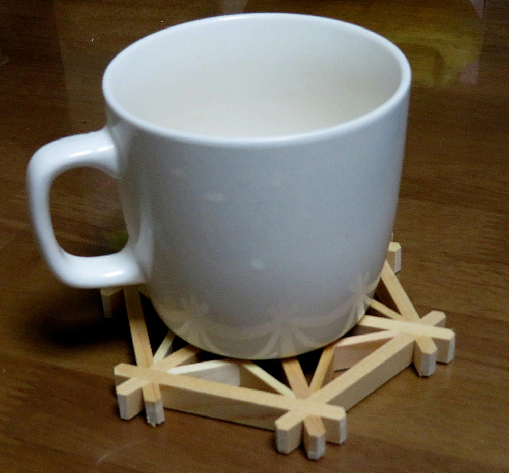 Makes a great coaster, or hotplate holder. Now, I really want the interlaced weaving one, but I have no place to keep it... ;-(