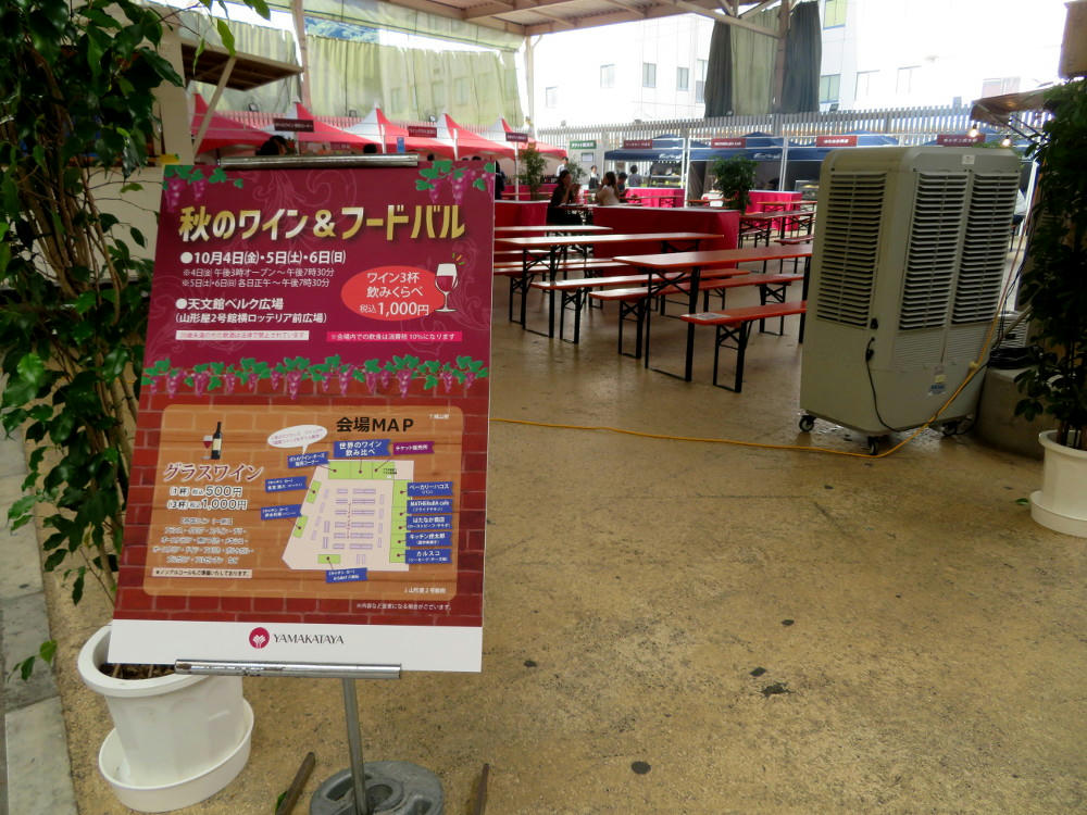 Conversely, though, the space in front of Lotteria and Yamakataya did have their periodic Wine and Food event. 500 yen ($4.50) for one glass (1,000 yen for 3). While the selections look good, the servings are small for the price. No live entertainment this time.