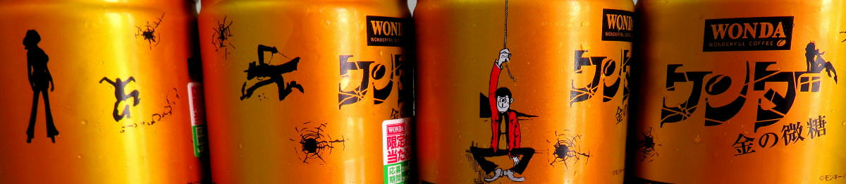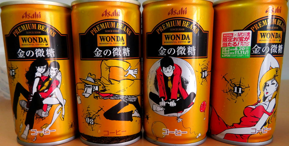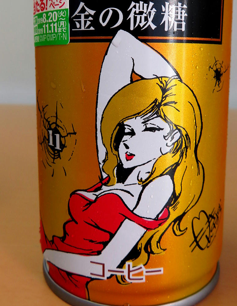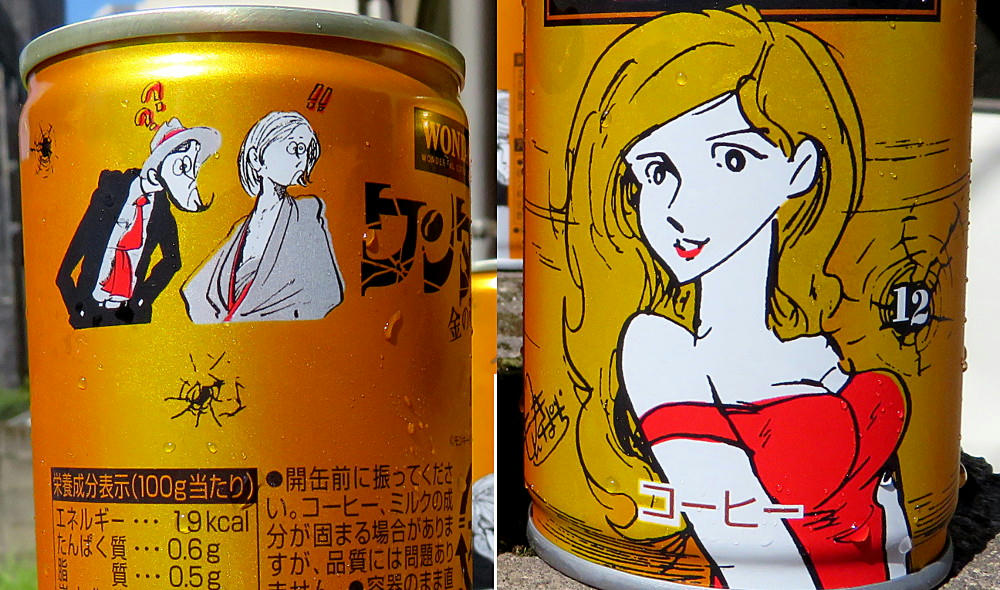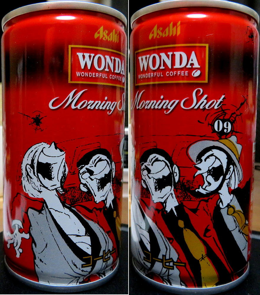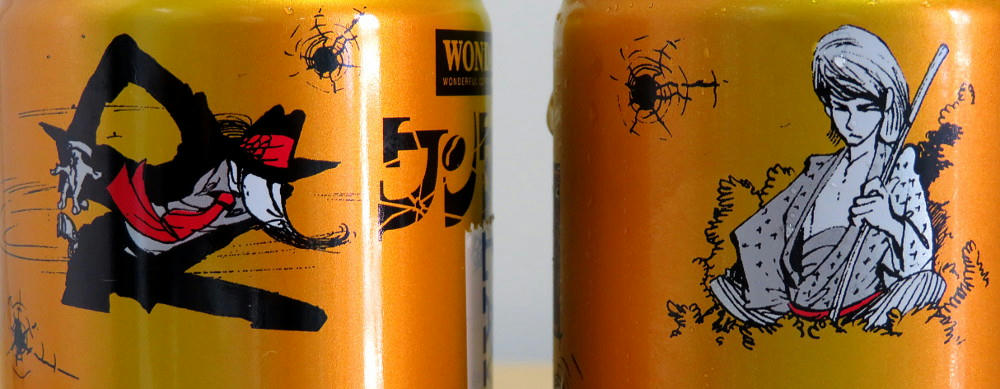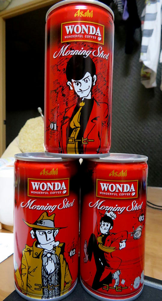 The Wonda campaign page has a display of all of the cans (4 at a time) in both the Red and Gold series. What I didn't notice right away is that #11 and #12 for both sets are marked "Rare." If that's really the case, I've been lucky in getting everything but red #12 so easily. The thing is, that one has what's arguably the best artwork for Fujiko, and I can see why it may not have stayed on the shelves like all the others have. I'm not sure if the stores restock when inventory gets low. As mentioned before, not everyone carries the same brands (one place may not have either line, while another has only the red cans, another only gold, and yet another has some of both). I can try revisiting the places I know have Morning Shot, and hope I get lucky. Or, if I feel brave and no one else is in the shop, I may try asking the clerk if they have #12 in the back somewhere.