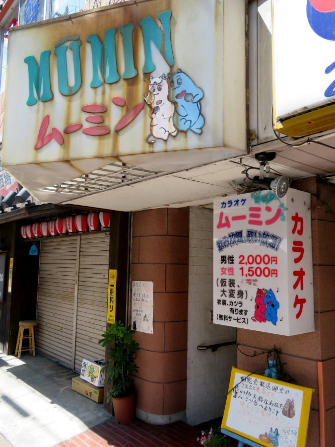I wonder if the owners of the Moomin trademarks know about this karaoke bar in Tenmonkan...