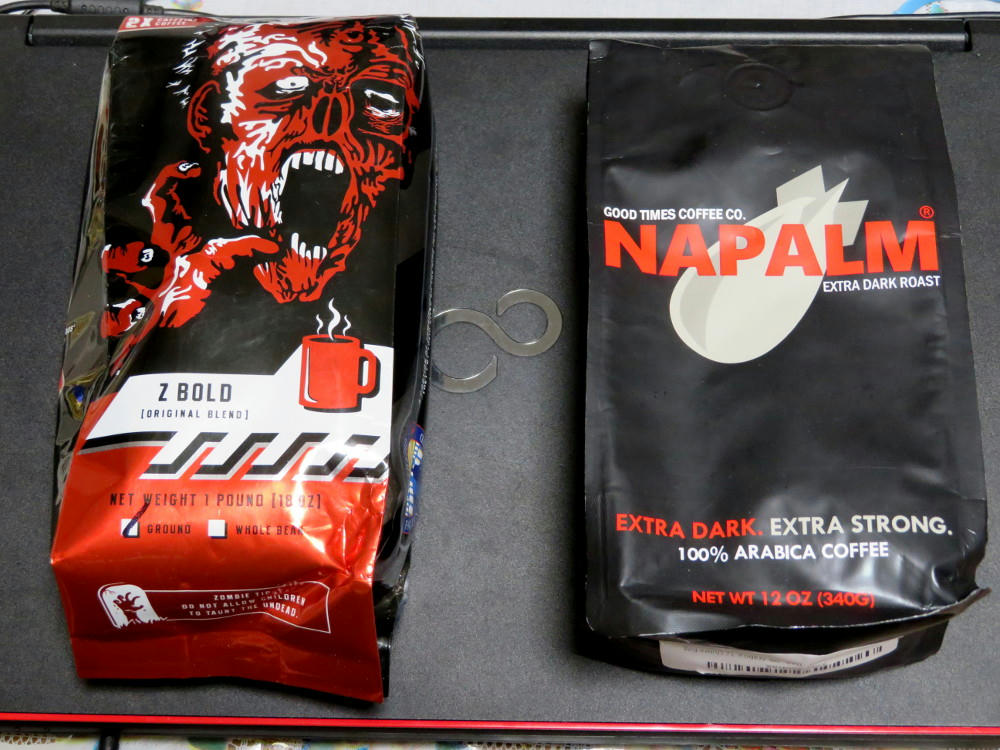 When your coffee has more attitude than you do. Z Bold from Zombie Joe, and Good Times Napalm.
