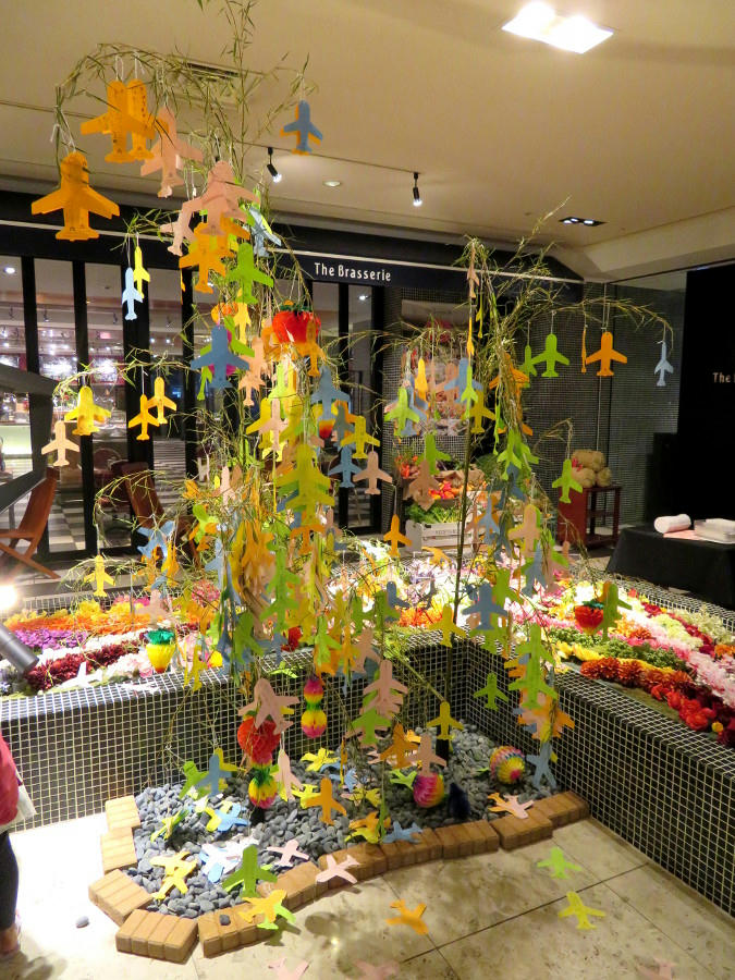 Happy Tanabata - airplane cutouts at a hotel lobby near the airport.