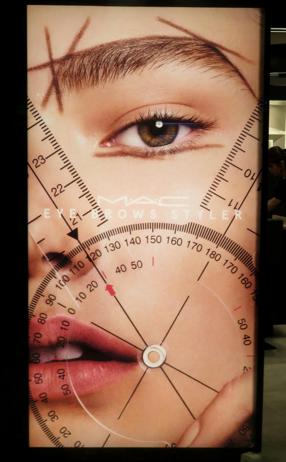 Yeah, back to the weird cosmetics ads. "Eyebrow Styler." You too can look like a pinned-up dress pattern.