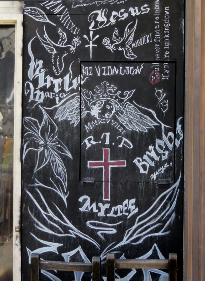 The chalk art for Bright used clothing is changing more often now, and it's definitely showing a strong religious motif.