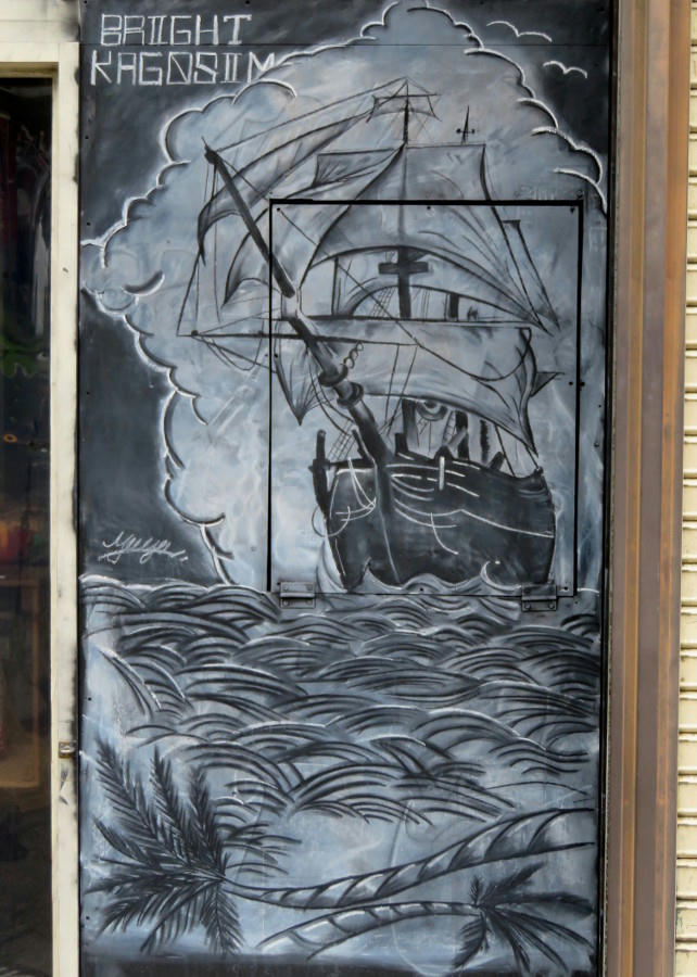 More chalk art from the Bright used clothing shop. This is one of the better ones so far.