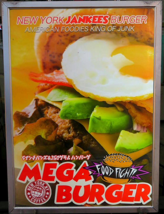 This time, they're doing their Food Fight Mega Burger - "New York Jankees Burger - American Foodies King of Junk." I'm not sure this means what they think it means.