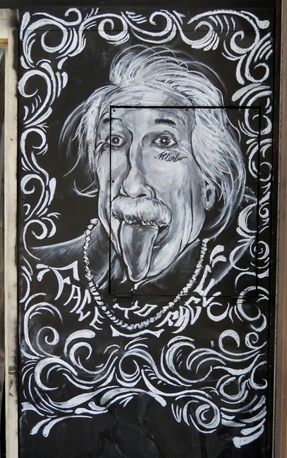 More chalk art at the Bright used clothing store on Streetcar street. I think the text reads "Face to Face."