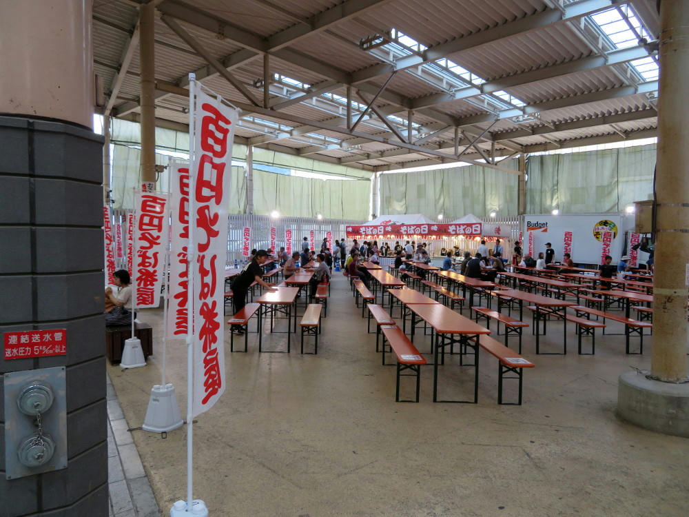 Last week, I think around Wednesday, the open space in front of Lotteria had their "100 yen Soba Day." Actually, the bowls of soba were between 300 and 500 yen for the fancier stuff, and the toppings were extra. But, it's the thought that counts. I didn't know this was going on until I went in to the English class to teach lessons, and when I got out, the event had finished and they were already tearing down the tables.