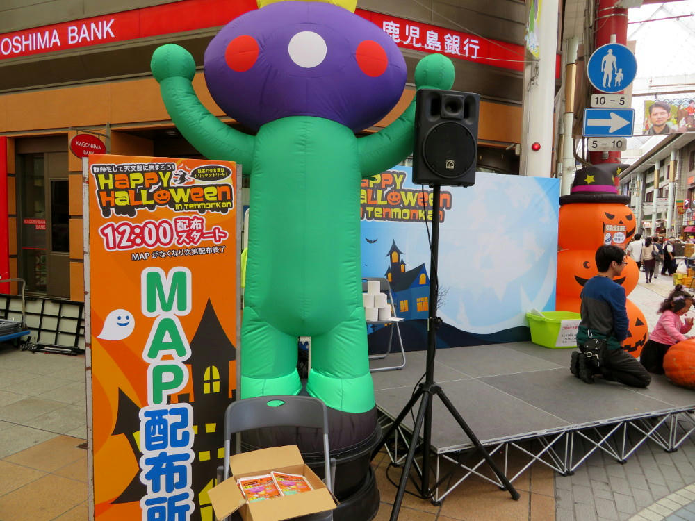 Tenmonkan just doesn't seem to do Halloween for adults. They have a couple opportunities for small children to play dress up for their parents, and then walk around the shops to get candy in the middle of the afternoon on Saturday, and that's it. There was kind of a tie-in with Maruya Gardens department store, which sold some costumes and tickets for the "Halloween streetcar" ride on Sunday, but otherwise that was pretty much all. The streetcar ride was at 3 PM or so on Sunday, when I was still at the Volunteer Center watching a traditional Okinawan folksong performance, so I missed that (not that I missed much. To get on the streetcar, you had to be dressed up as a streetcar.)
