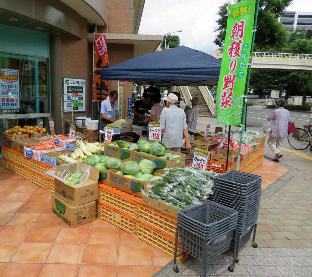 This is Kagoshima's idea of a "farmer's market" - to set up tables in front of a grocery store and then undercut themselves on price with direct-from-the-farm produce.