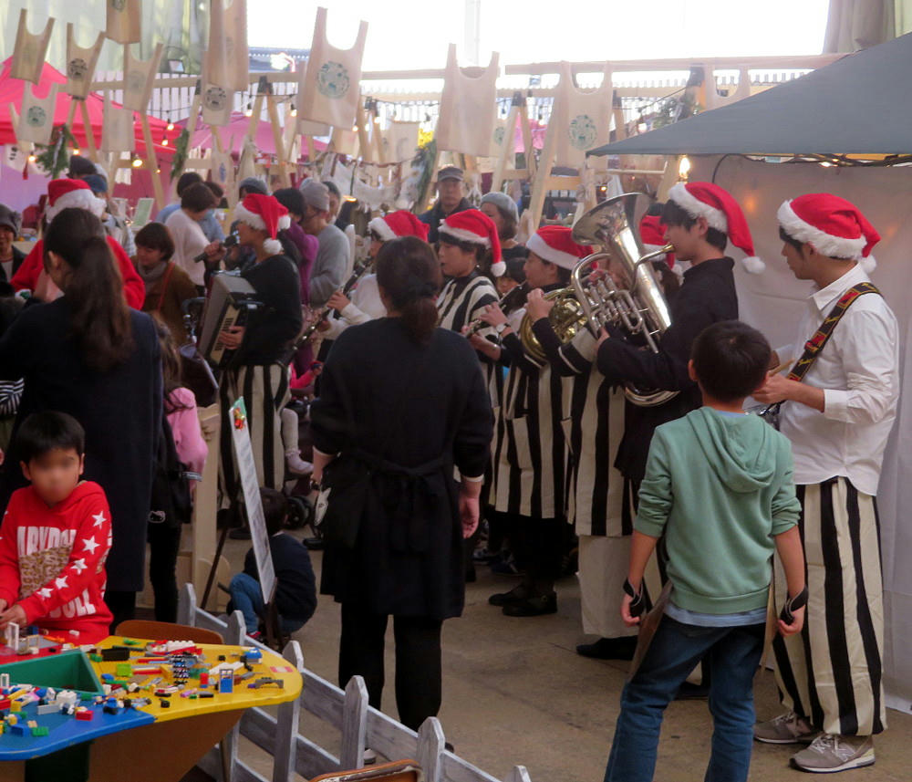 The Christmas Village running in the open plaza in front of Lotteria had a small marching band playing when I came by on Saturday on my way to the English school.