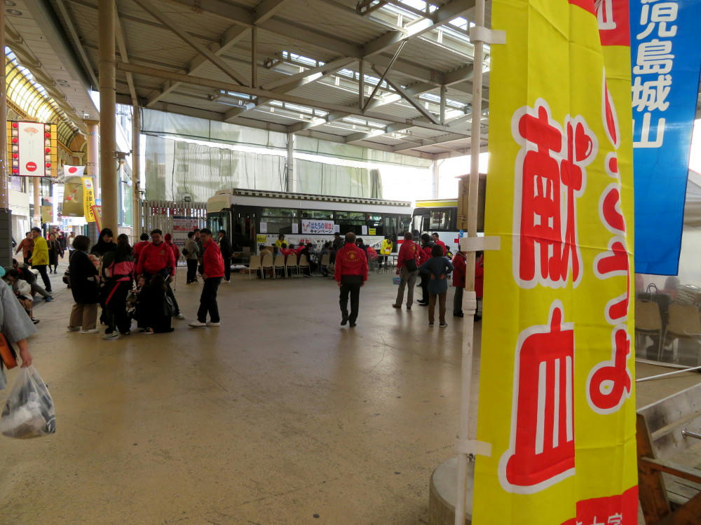 There was a fair amount going on, on Sunday. Along with one of the mochi pounding spots in front of the Lotteria near the Yamakataya department store was also a Red Cross blood drive. Given that there's a strong cultural taboo in Japan regarding the spilling of blood, obtaining sufficient blood supplies for the victims of natural disasters here is an uphill battle.
