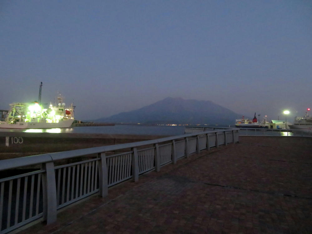 A little while ago, one of the people I know in Tokyo sent me an email alerting me to an SDF ship of some kind being scheduled to dock in Kagoshima, down at the waterfront park in front of Dolphin Port. Unfortunately, I wasn't able to get down there soon enough, and I missed it. But, just on the off-chance, I did walk to the Port after one of my evening classes a couple days later, and I found a completely different ship. I had no idea what it was, so I took some photos and went back home to look it up on the net.